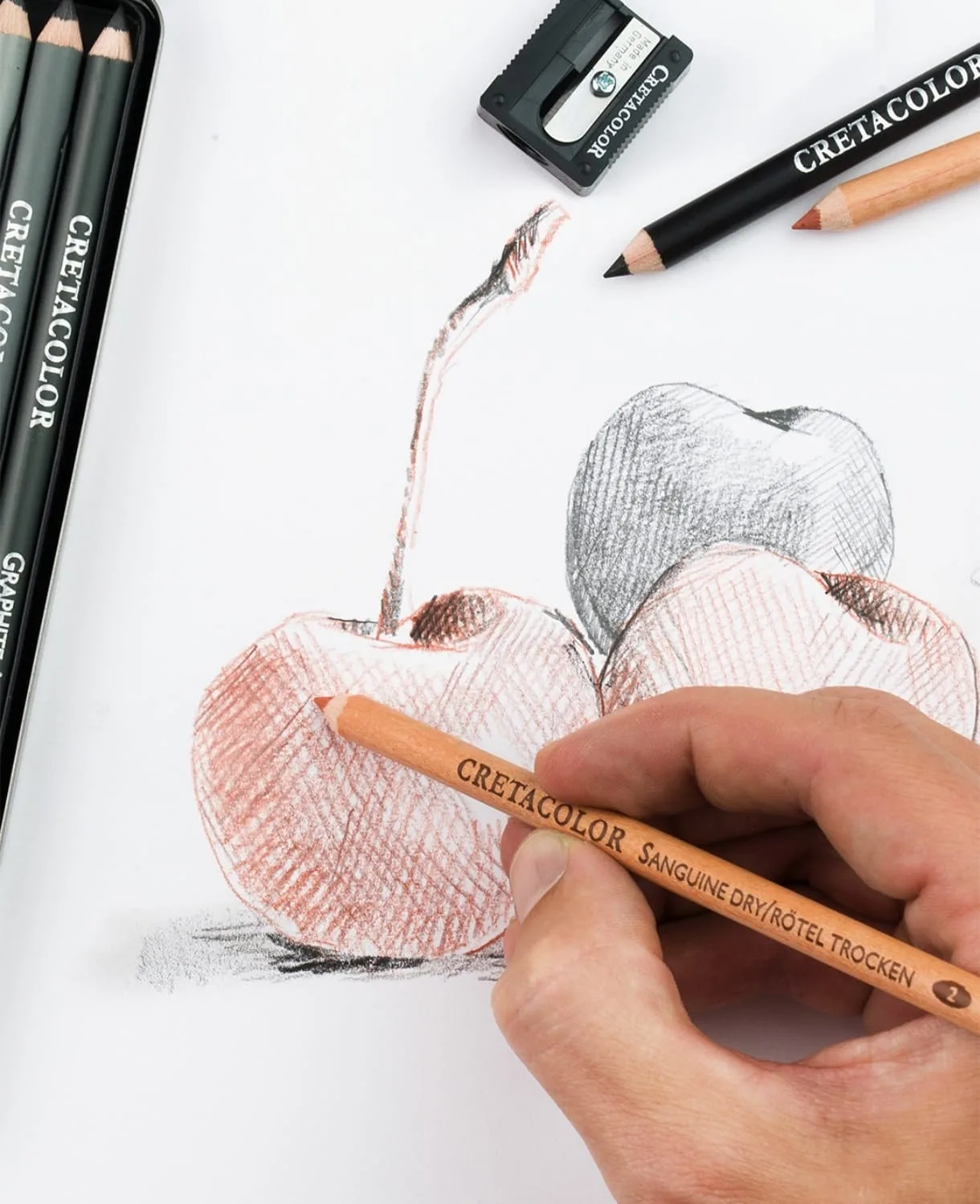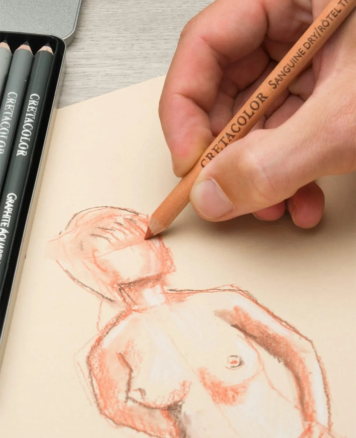 Los lápices Cretacolor Sanguine son herramientas clásicas de dibujo que han sido fundamentales en el oficio de la ilustración y el diseño. Estos lápices están disponibles en dos versiones principales: Dry (Seco) y Oil (Graso).Ambas versiones se caracterizan por su alta pigmentación, lo que permite una aplicación intensa de color, además de su notable resistencia a la luz. Esto asegura que las obras creadas con ellos mantengan su integridad y color vibrante con el paso del tiempo. El tono rojizo terracota de los Sanguine Pencil es especialmente valorado, ya que añade riqueza y profundidad a retratos, desnudos y paisajes. Este color permite captar sutilezas en la piel y texturas, facilitando el trabajo de degradados y sombras.Los lápices Sanguine son muy versátiles y pueden ser utilizados en diversas técnicas de dibujo. Su formulación permite que se puedan difuminar con facilidad, lo que resulta en acabados suaves y naturales. También son excelentes para realizar bocetos iniciales, ya que su pigmentación se seca rápidamente, evitando manchas indeseadas.