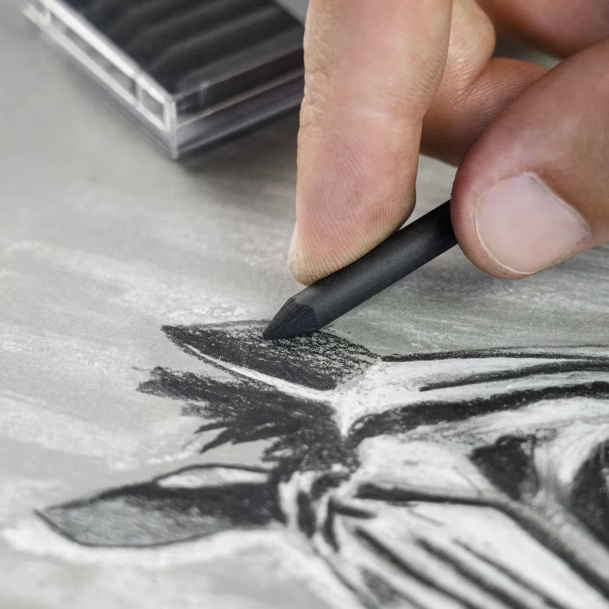 La tiza negra de dureza media ofrece una experiencia versátil para la creación de bocetos y dibujos. Su composición permite obtener líneas suaves y profundas, facilitando la transición entre tonalidades y contrastes.Esta tiza se puede utilizar en diversas técnicas, ya sea sola para crear contornos definidos o mezclada con agua para lograr efectos más suaves y sutiles. También se puede combinar de manera efectiva con otros medios como la sanguina y el sepia, ampliando así las posibilidades creativas.Presenta una textura que permite una aplicación uniforme sobre diferentes tipos de papel, ofreciendo un agarre que evita que se deslice. Su dureza media asegura que permita un buen control en los trazos, sin perder la profundidad del color.Para obtener los mejores resultados, se recomienda probar distintas técnicas de aplicación y mezcla. La tiza puede ser utilizada en combinación con otros pasteles para enriquecer los resultados finales, logrando así obras únicas y personales.