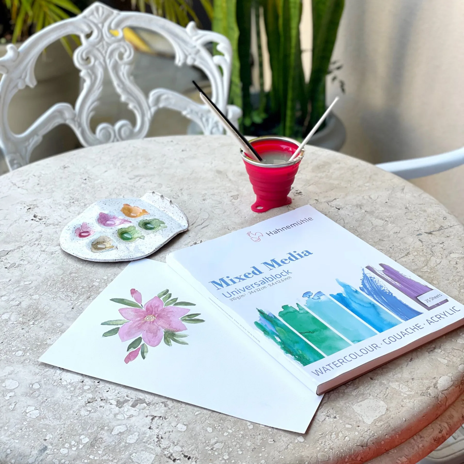 El Mix Media Bloc tiene un gramaje de 310 gramos, lo que lo convierte en una opción resistente y versátil para diferentes técnicas de pintura. Su fabricación permite una excelente absorción de líquidos, lo cual es fundamental para trabajar con acuarela, acrílico y gouache.Este bloc se ofrece en dos tamaños prácticos: 24x32 cm y 30x40 cm. Cada tamaño está diseñado para adaptarse a distintas necesidades y estilos de trabajo, facilitando la creación de obras en formatos variados.