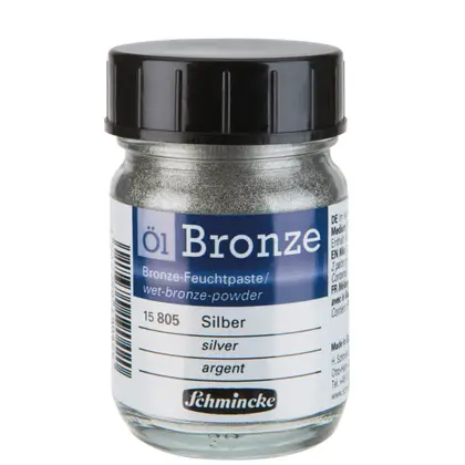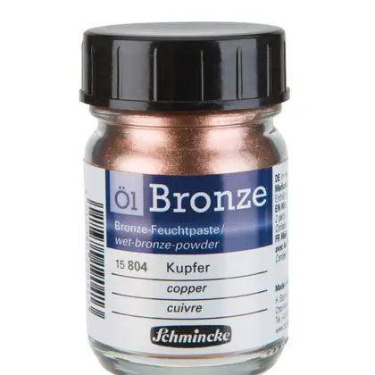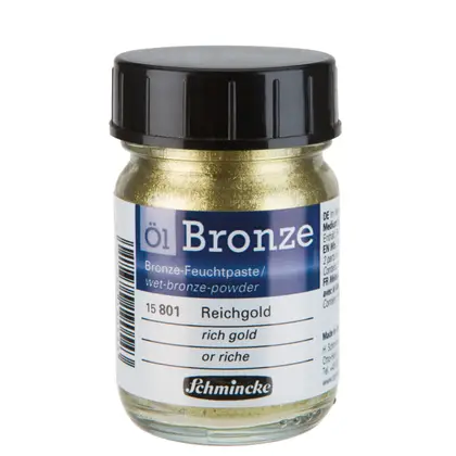 Los Oil Bronze de Schmincke son pigmentos en polvo elaborados a base de metales, diseñados para mezclarse con aceites y crear óleos con un acabado verdaderamente dorado, bronce o plateado.Estos pigmentos ofrecen una alta concentración de metal, lo que permite obtener tonalidades vibrantes y metálicas en las obras. La textura fina del polvo asegura una mezcla homogénea con el aceite, facilitando su aplicación y logrando un efecto luminoso. Solo debes mezclar con aceite de linaza la cantidad que necesitas usar en el momento.Vienen en frascos de vidrio, con 50 ml, que protegen el pigmento de la humedad y la luz, asegurando su conservación y longevidad. Se recomienda almacenarlos en un lugar fresco y seco para mantener su calidad y propiedades intactas.