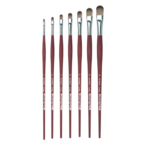 El Pincel Lengua de Gato DaVinci College se ha diseñado pensando en aquellos que buscan calidad en sus herramientas de pintura, ya sea en un entorno educativo o profesional. Su construcción y materiales aseguran resultados consistentes en diversas aplicaciones artísticas.A pesar de estar orientados hacia el estudio, los pinceles Da Vinci College tienen una calidad que también los convierte en una opción preferida para profesionales. Su rendimiento excepcional se traduce en trazos precisos y detalles cuidados. Están fabricados con fibra sintética resistente, lo que les confiere durabilidad y un excelente comportamiento con diferentes tipos de pintura. El casquillo de aluminio sin costuras garantiza una sujeción firme, evitando cualquier tipo de desprendimiento durante el uso. Los tiradores presentan un acabado mate en un color marrón rojizo, junto con una nueva estructura antideslizante, que proporciona un agarre cómodo y seguro. Este pincel es adecuado para utilizar con pinturas acrílicas líquidas y al óleo, aportando versatilidad en los proyectos artísticos. Las asas largas en un elegante color burdeos ofrecen un buen control y permiten trabajar con comodidad en proyectos que requieren tiempo y dedicación.