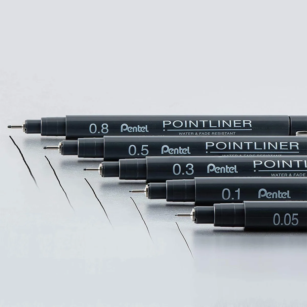 Los Pointliner Pentel son marcadores finos especialmente diseñados para ofrecer una experiencia de escritura y dibujo precisa. Disponibles en varios tamaños, que van desde 005 hasta 08, estos marcadores permiten una variedad de líneas finas y detalladas, perfectas para diferentes tipos de trabajos, ya sean de escritura técnica, ilustración o diseño.Una de las principales ventajas de los Pointliner Pentel es su resistencia al agua, lo que significa que sus trazos se mantienen intactos incluso en condiciones de humedad. Esta característica asegura que tus trabajos sean duraderos y se conserven en óptimas condiciones, sin preocuparte por borrados accidentales o manchas.Utiliza los Pointliner Pentel en una amplia gama de aplicaciones, desde la elaboración de bocetos hasta la creación de presentaciones visuales. Su precisión y claridad los hacen excelentes para proyectos que requieren atención al detalle, permitiendo que cada línea y cada trazo se realicen con mucha facilidad.