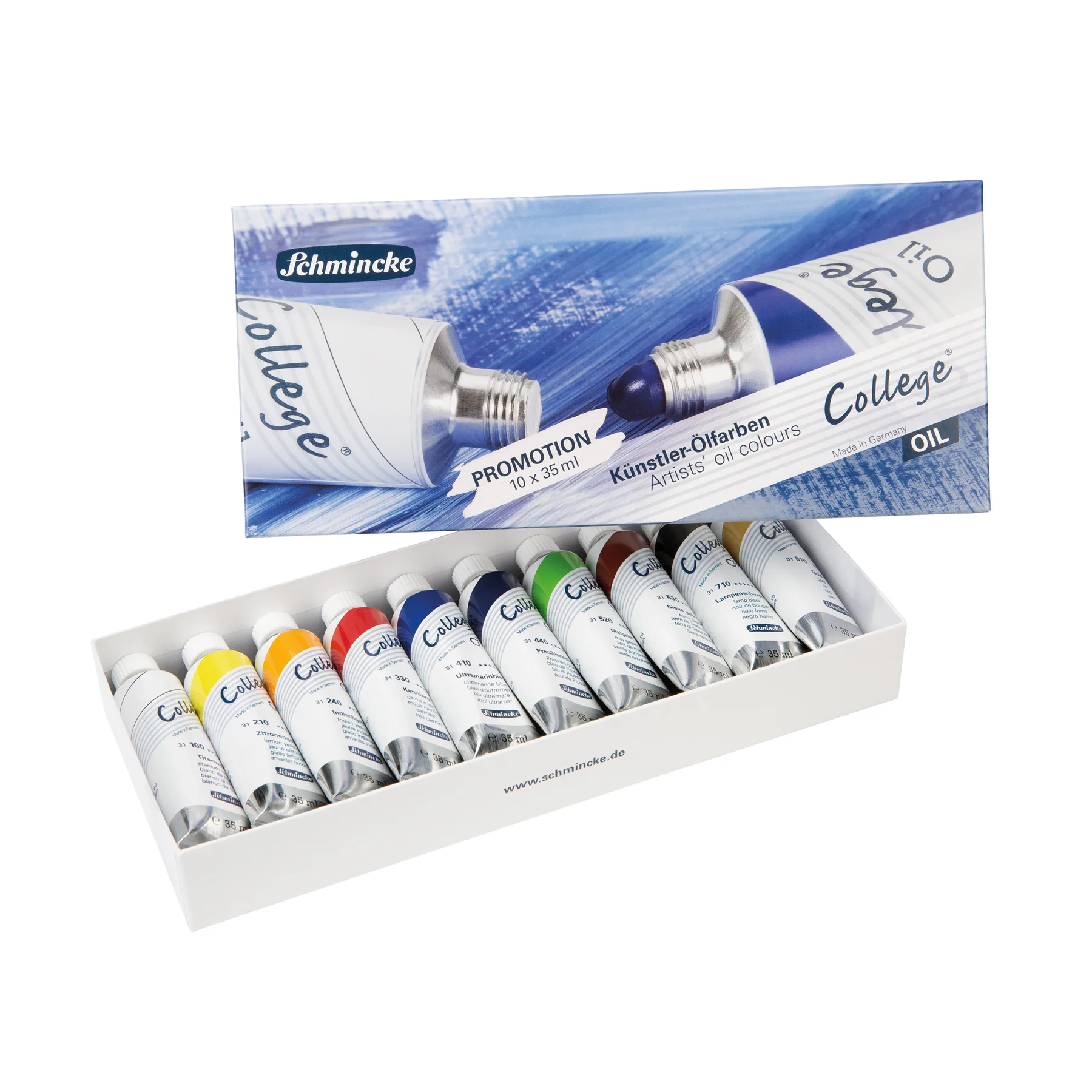 Este set de promoción especial incluye 10 pomos de 35 ml cada uno, ofreciendo una variedad de colores ricos y vibrantes para tus proyectos artísticos. Los óleos de este set están elaborados con pigmentos de calidad estudio, lo cual garantiza una excelente saturación y durabilidad en tus trabajos. Utiliza aceite natural en su fórmula, lo que les confiere una textura cremosa que permite una aplicación suave y uniforme. Adicionalmente, estos óleos son reconocidos por sus propiedades de resistencia a la luz, asegurando que los colores mantengan su intensidad a lo largo del tiempo, incluso en condiciones de exposición a la luz. Los colores de Oleo College son completamente mezclables entre sí, así como con otros colores y mediums para óleos de la línea Schmincke. Esto te permitirá crear infinitas tonalidades y efectos en tus obras, proporcionando una versatilidad apreciable en el proceso de creación.